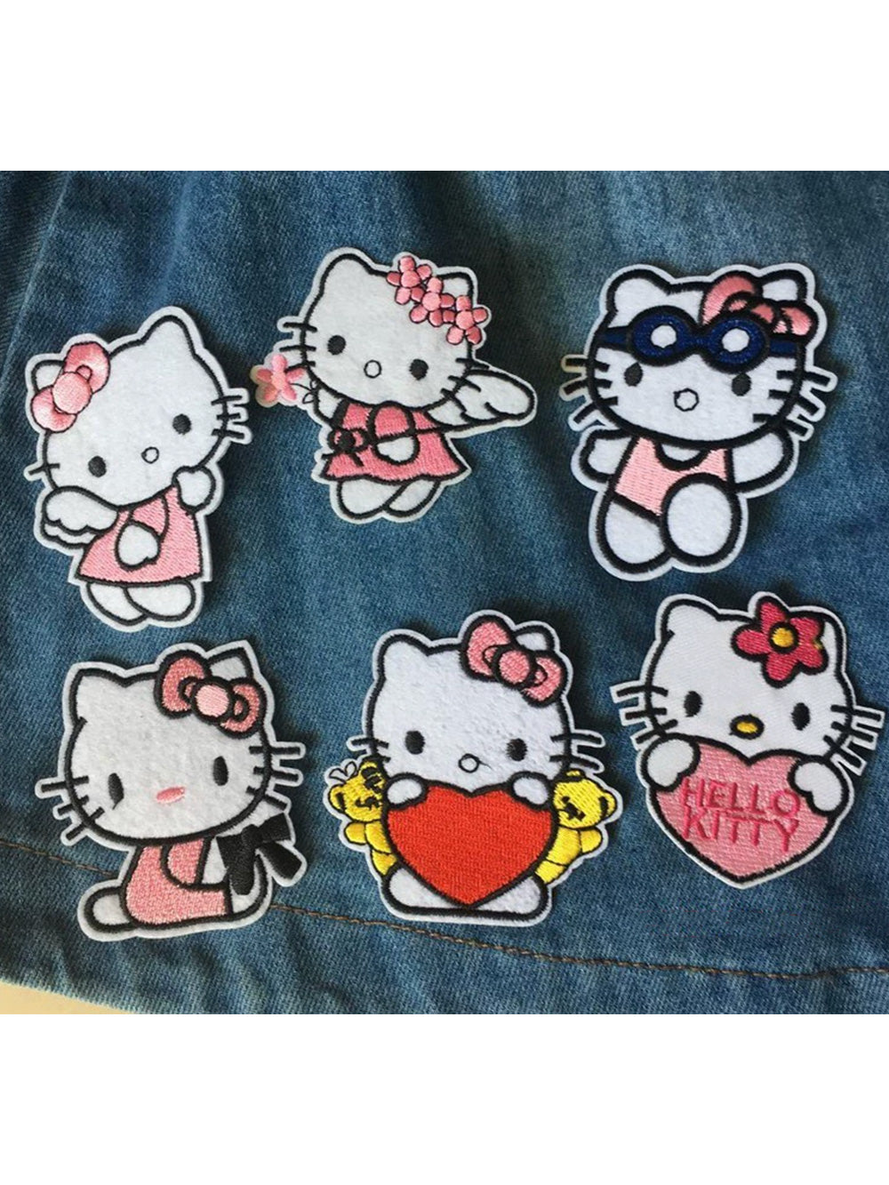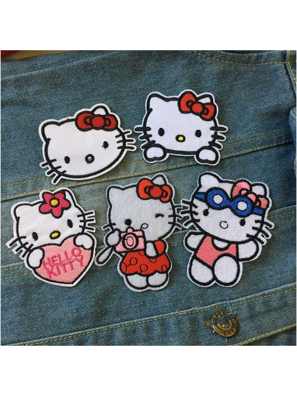 Embroidered iron-on patches | Hello Kitty handmade patches | Hole patching appliques