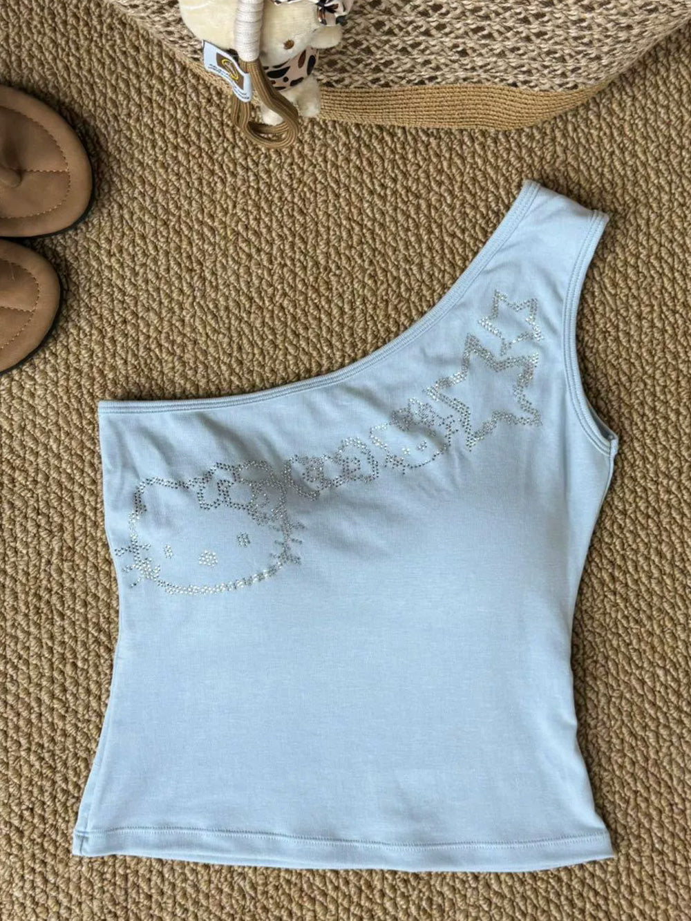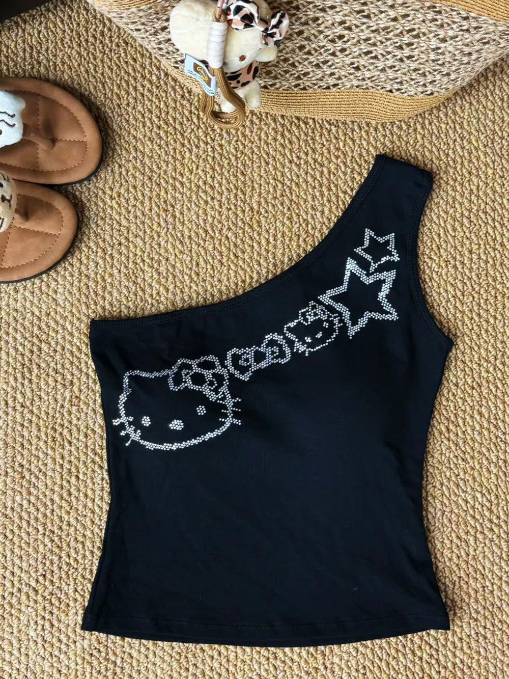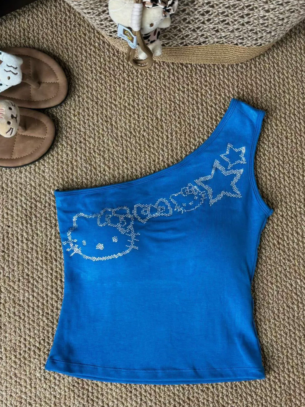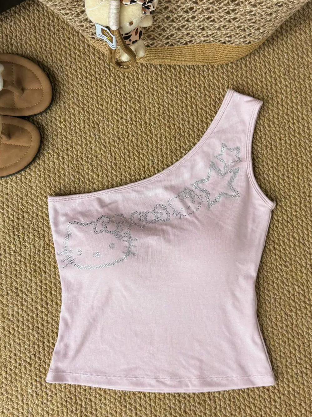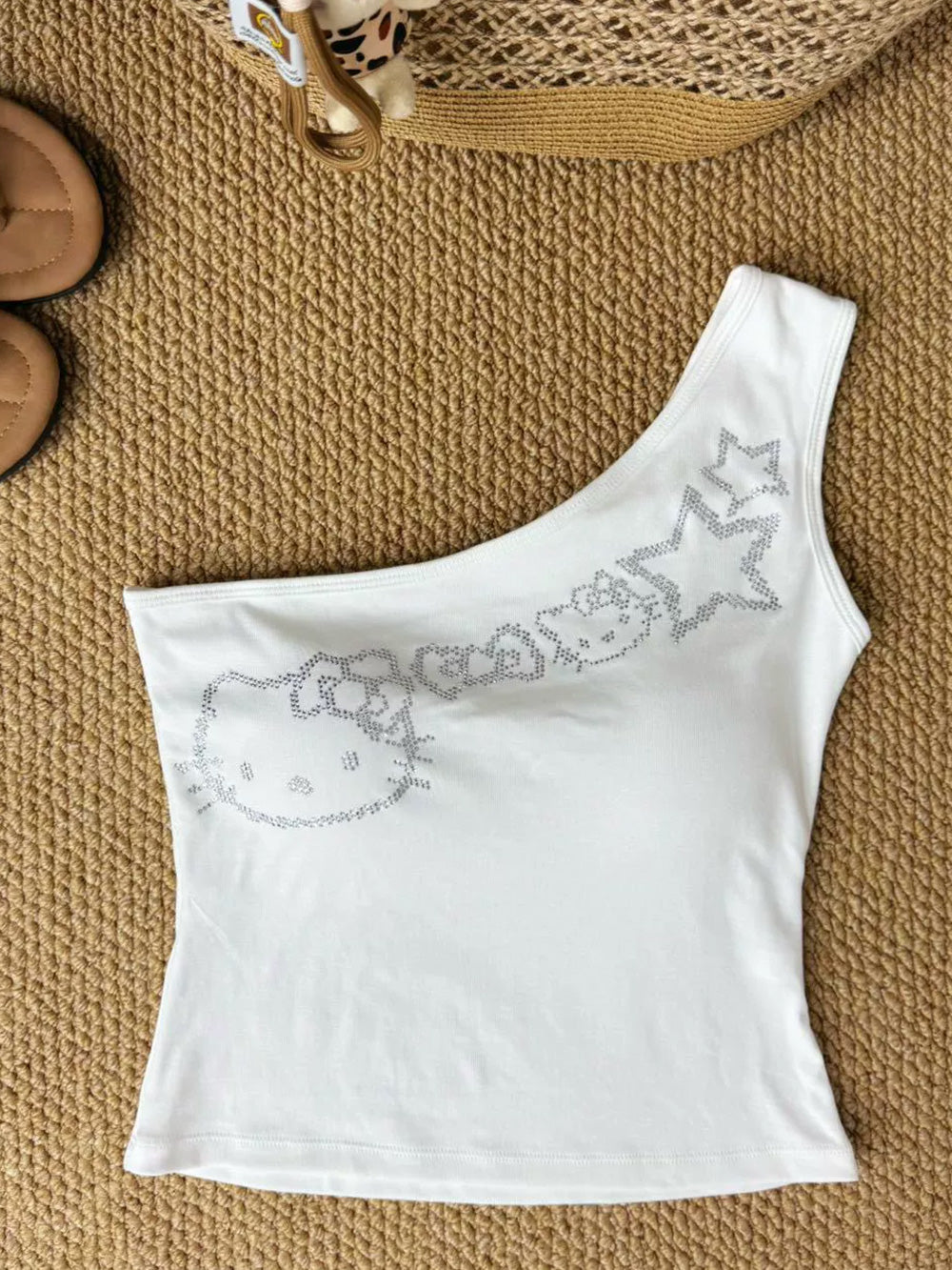 Hello Kitty rhinestone off-shoulder cropped vest | Off-shoulder versatile top