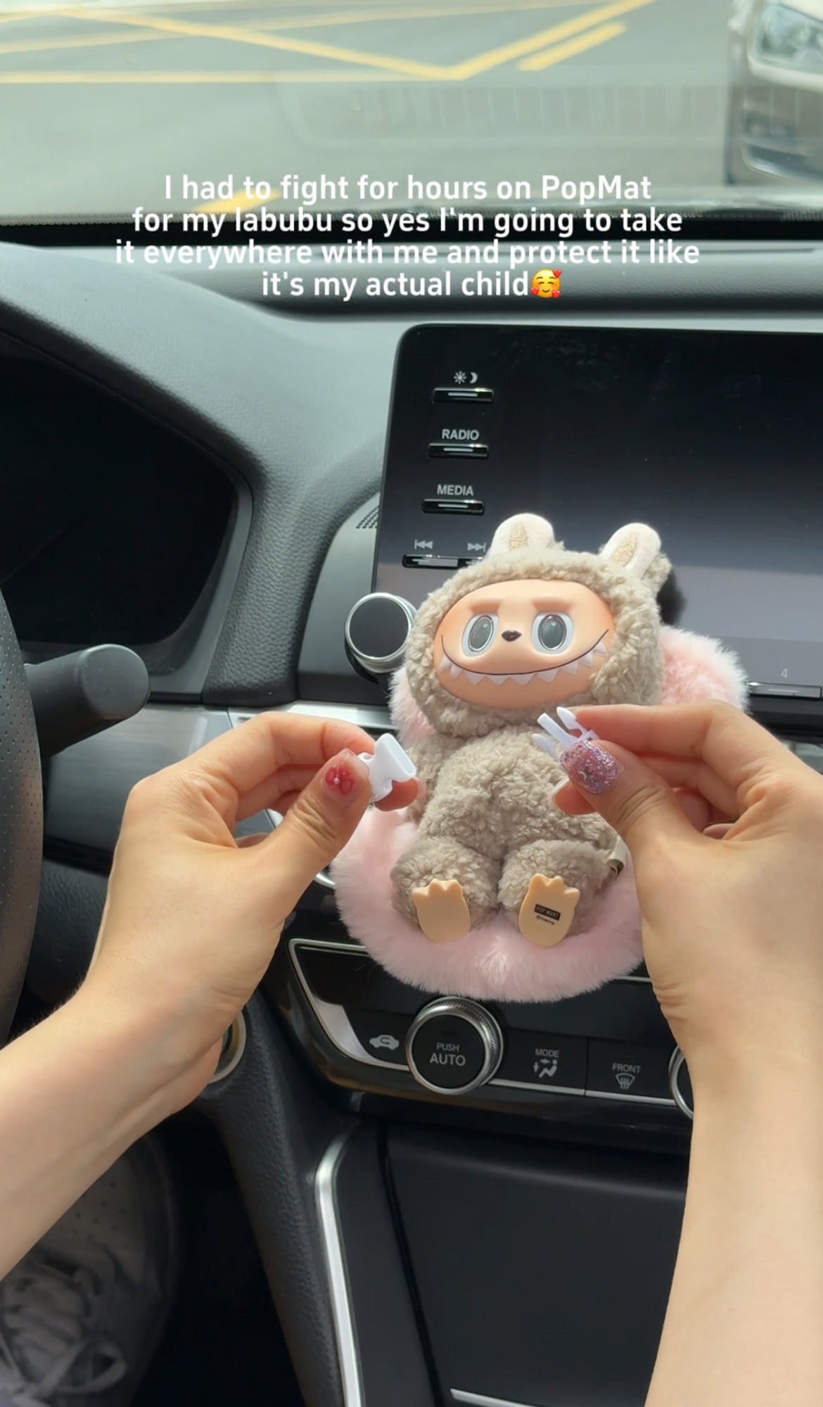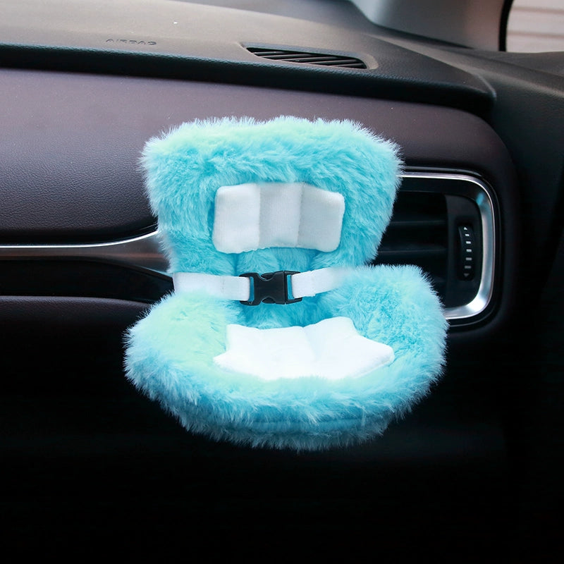 Labubu Doll Safety Seat with Air Vent Clip, Premium Furry Cushion for Car Decor & Creative Display.