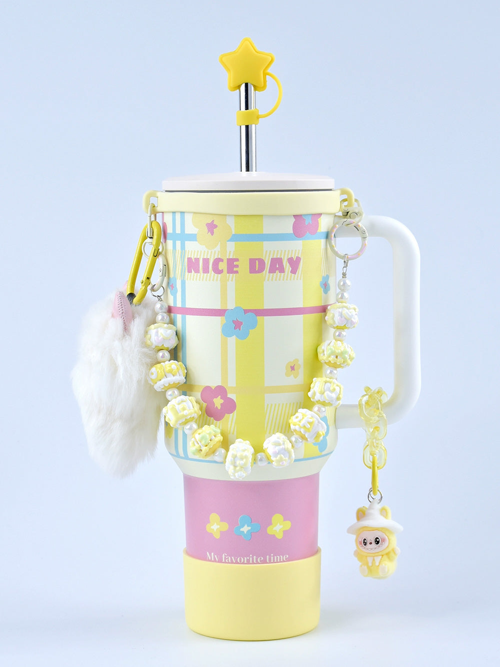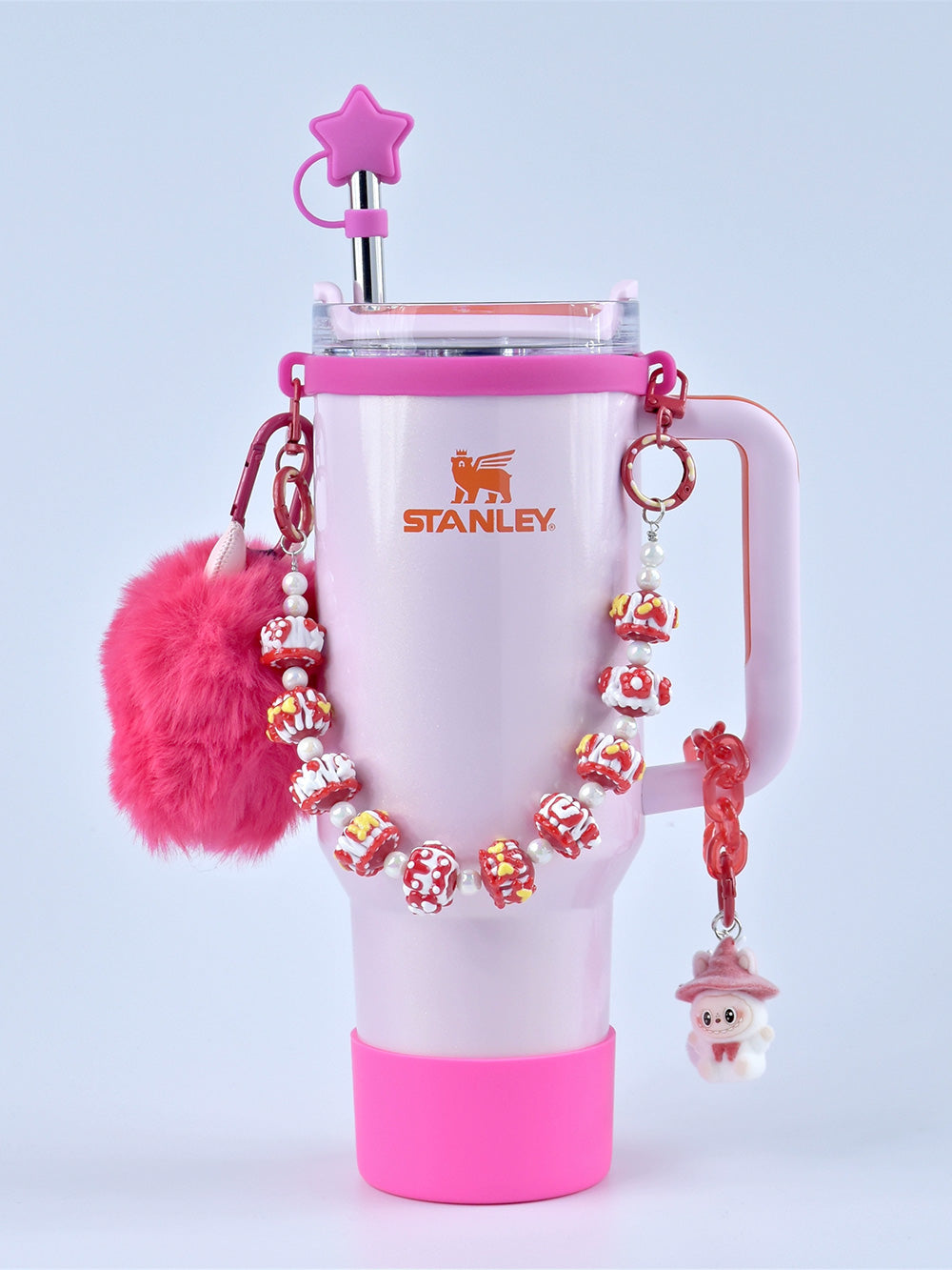 Stanley thermos DIY accessories: straw hat, hand strap, flower cup chain, pom pom (cup not included)